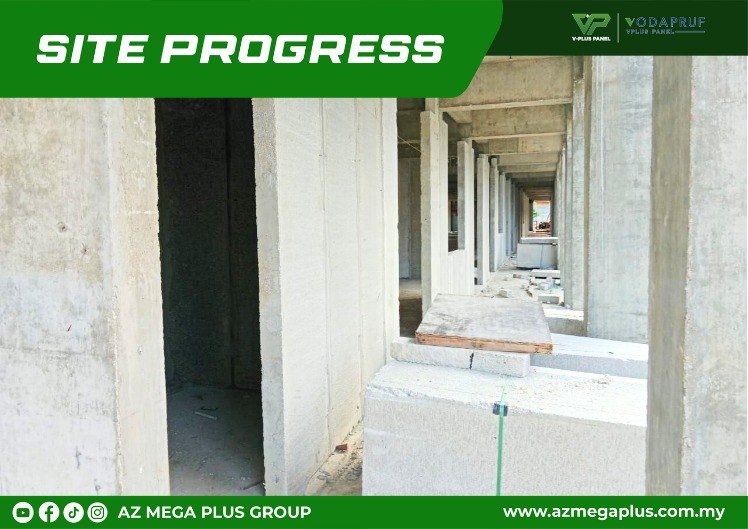 Pemilihan IBS V-PLUS Panel membantu mempercepatkan proses pembinaan di tapak projek. Panel pra-tuang bersaiz standard (10’ x 2’) membolehkan pemasangan dinding dilaksanakan dengan lebih cepat dan tepat, sekaligus mengurangkan jumlah sambungan serta menghasilkan permukaan dinding yang lebih rata dan kemas. Kaedah ini memudahkan kawalan jadual kerja serta mengurangkan kebergantungan kepada tenaga kerja yang ramai.